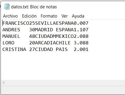 El fichero secuencial con los datos tendrá la forma de:
