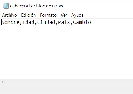 El fichero de cabecera contendrá los nombres de los campos del fichero secuencial: